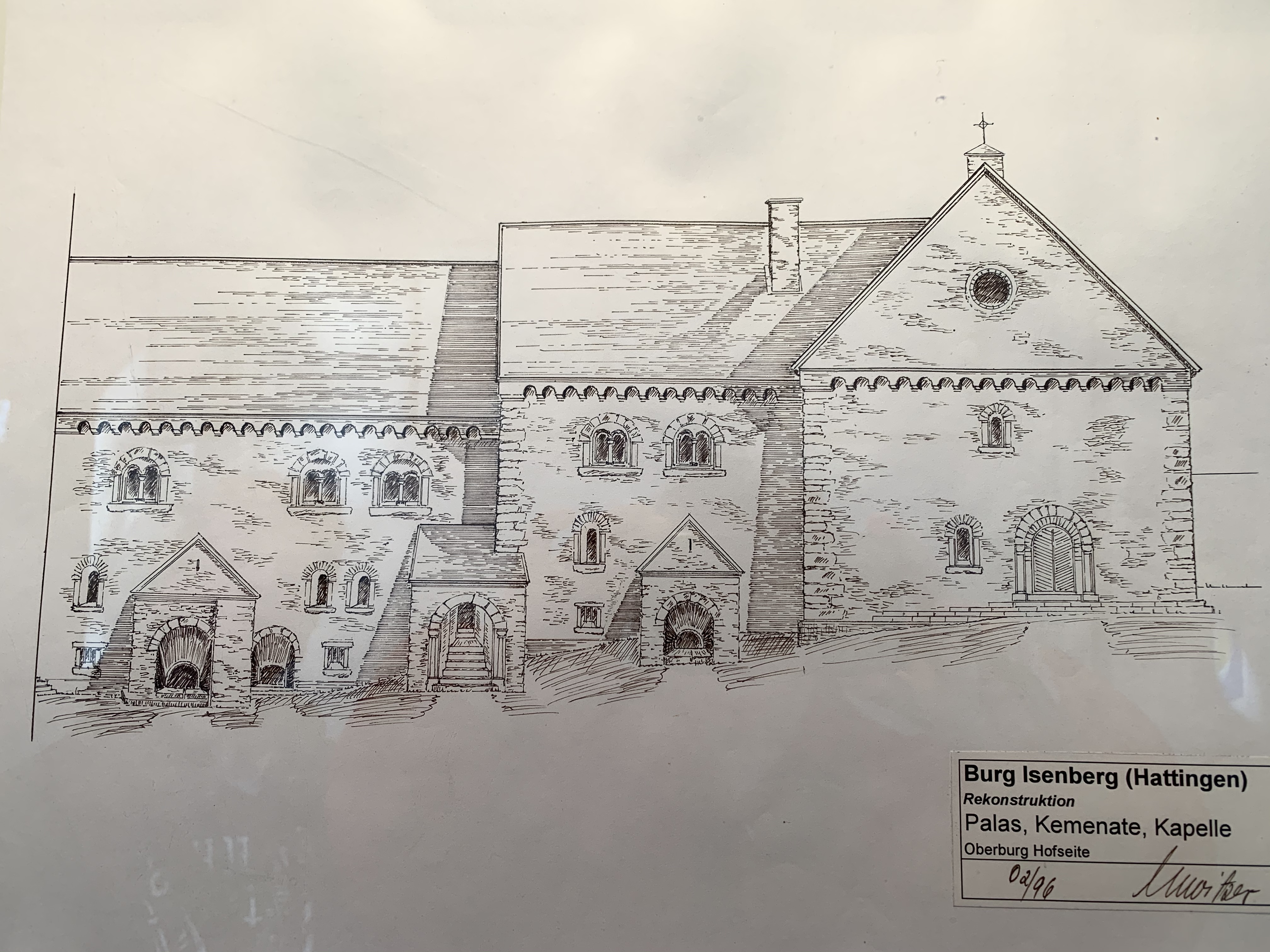An der Ostwand stand der Altar, der nach dem Glaubensatz "Ex oriente lux" - "Aus dem Osten ist das göttliche Licht zu uns gekommen:" dort aufgestellt war. Auch die Gläubigen in der Isenburg verrichteten ihre Gebete in Richtung nach Osten, nach Jerusalem.